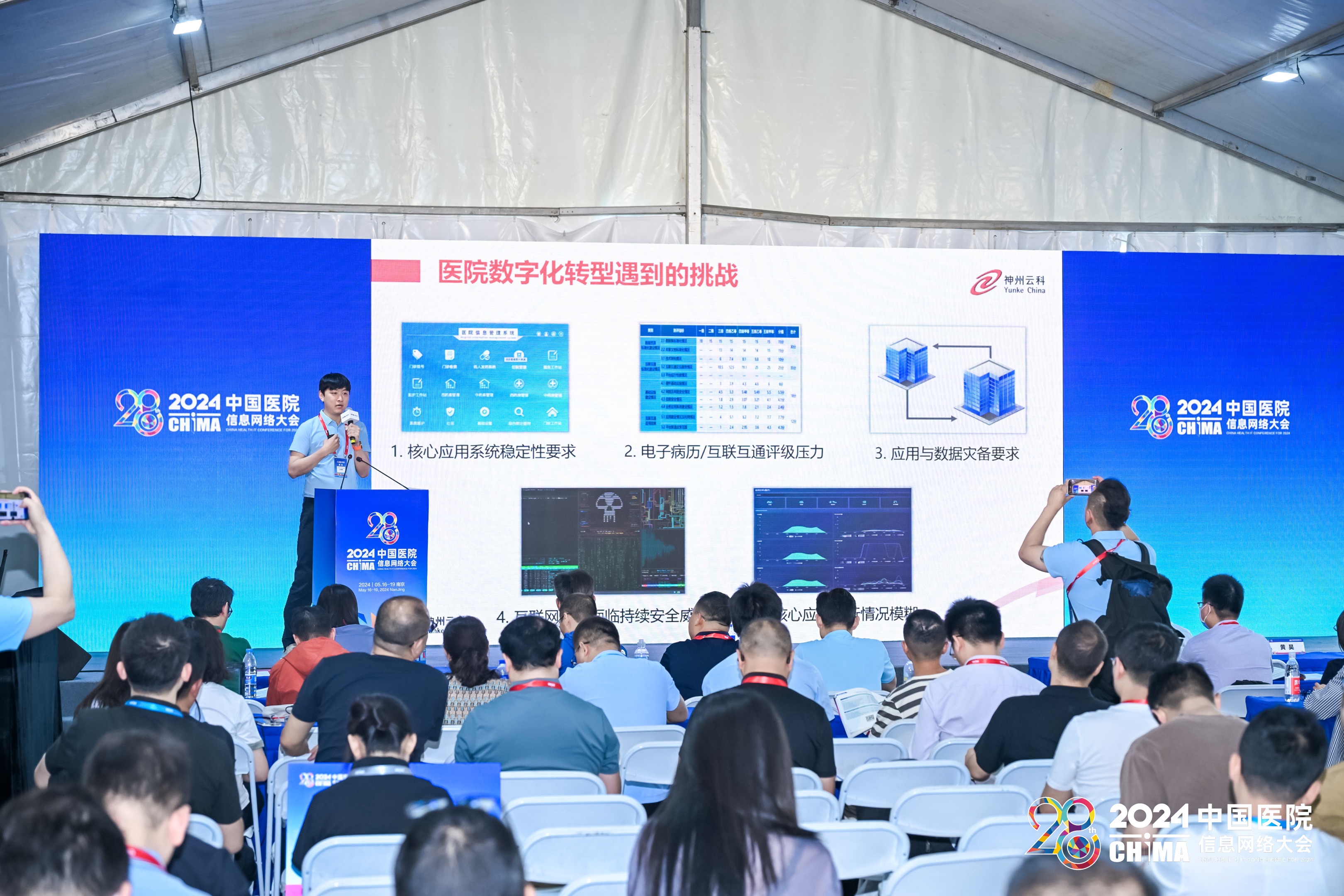 2024年5月17-19日,第28届中国医院网络信息大会(CHIMA2024)在南京圆满落幕。本次大会以新质生产力理论为指导,以深化应用,融合创新,用信息技术赋能医院高质量发展为主题,邀请国家卫生健康委相关司局领导、两院院士、国内外医疗卫生信息化领域知名专家学者、领军人物做主旨报告。在这场医疗信息化的年度盛会上,米兰电竞会上携其“保障医院核心系统健康无虞”主题演讲精彩亮相,成为展会的一大亮点。